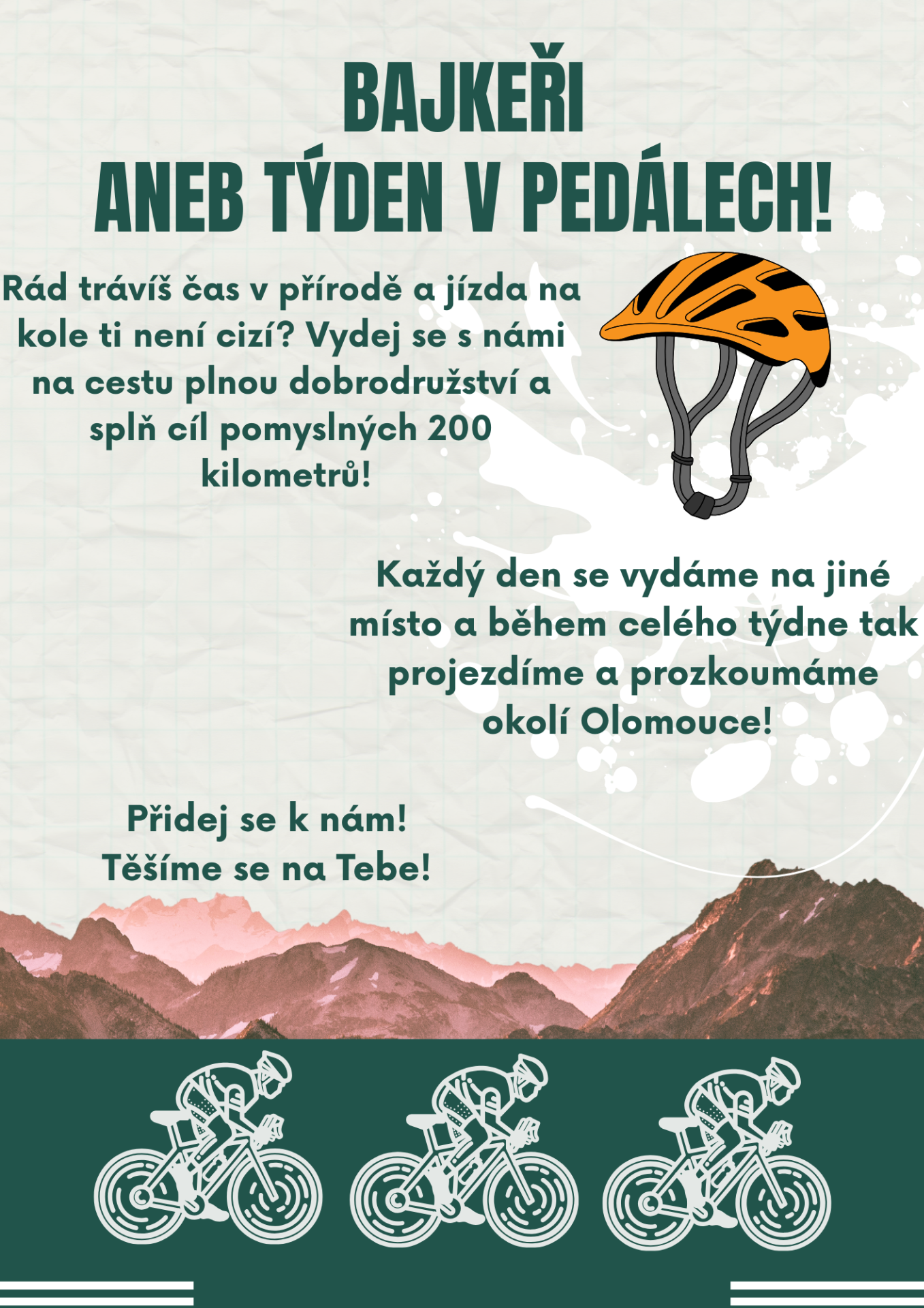 Nezapomeňte s sebou vlastní kolo - SEŘÍZENÉ a pojízdné :-)!