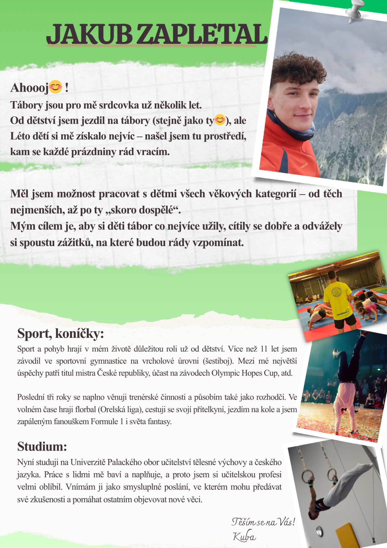 KDE: Sraz bude před kolejemi B. Václavka - Šmeralova 8, Olomouc. Tábor bude probíhat v prostorách kolejí a menzy UP (ul. Šmeralova).